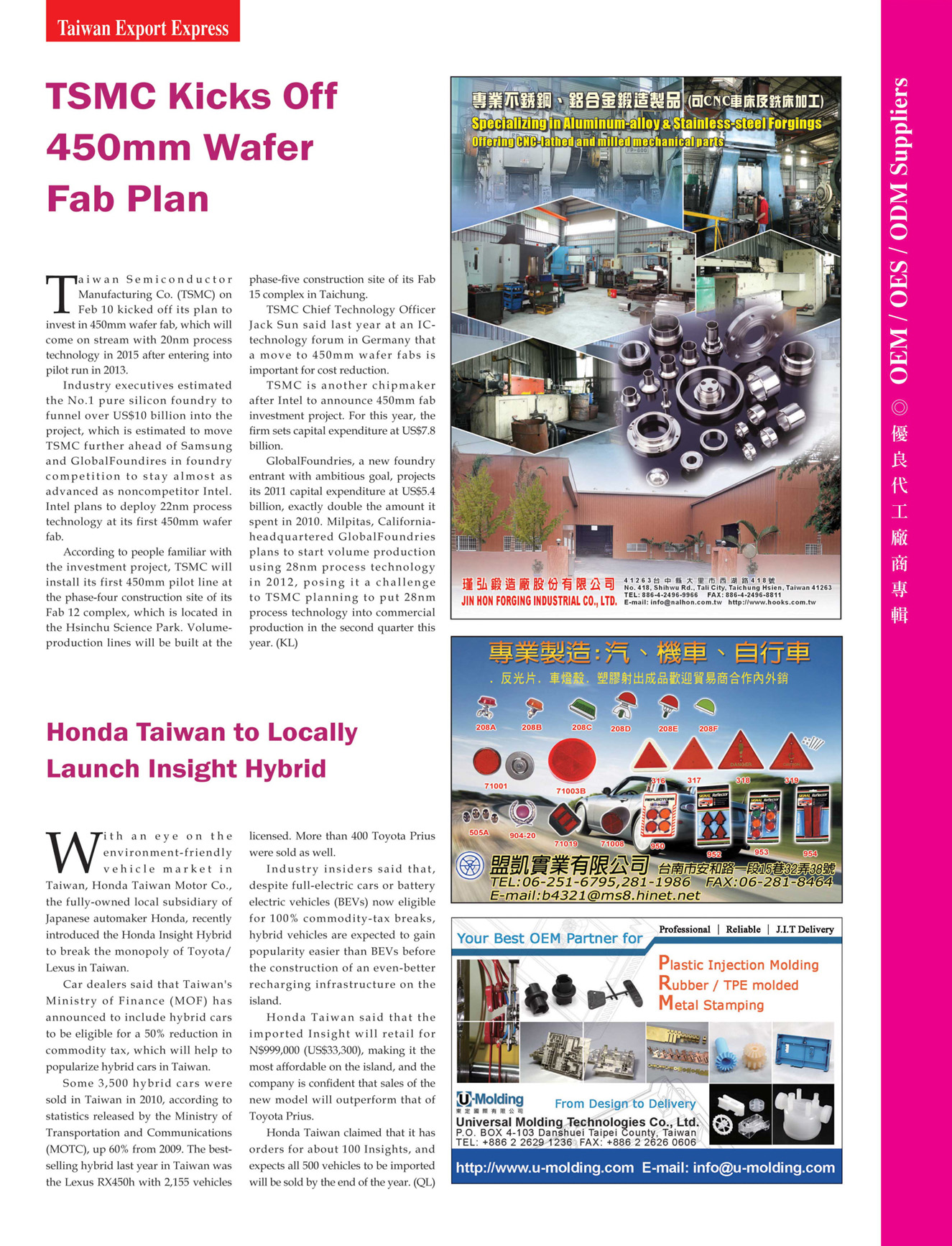UNIVERSAL MOLDING TECHNOLOGIES CO., LTD.